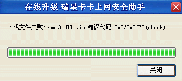 当卡卡开始升级后,就会访问瑞星网站升级服务器的网页,假如连接不到升级服务器的网页,就会提示:网络连接失败或者是获取升级地址失败/下载XXX文件失败等。