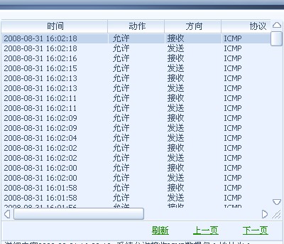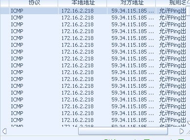 详细内容2008-08-31 16:02:18, 系统允许接收ICMP数据包;地址为:172.16.2.218 <= 59.34.115.185 Code=0, Type=0 ;满足规则:允许Ping出