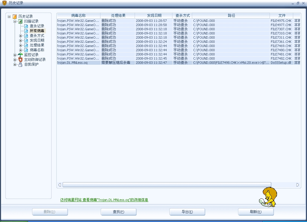 用正版瑞星查杀(病毒库20.60.10)查杀出