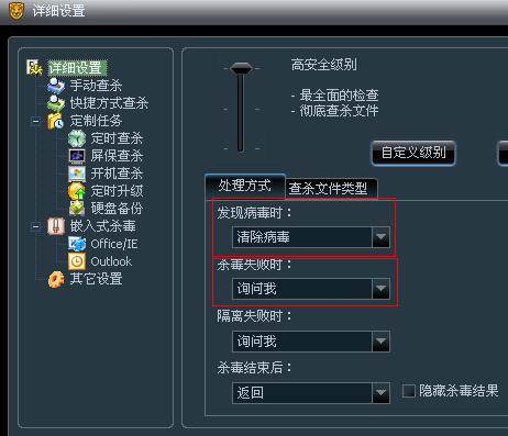 在杀毒设置和文件监控设置中,选择“清除病毒”,不要选“删除文件”。