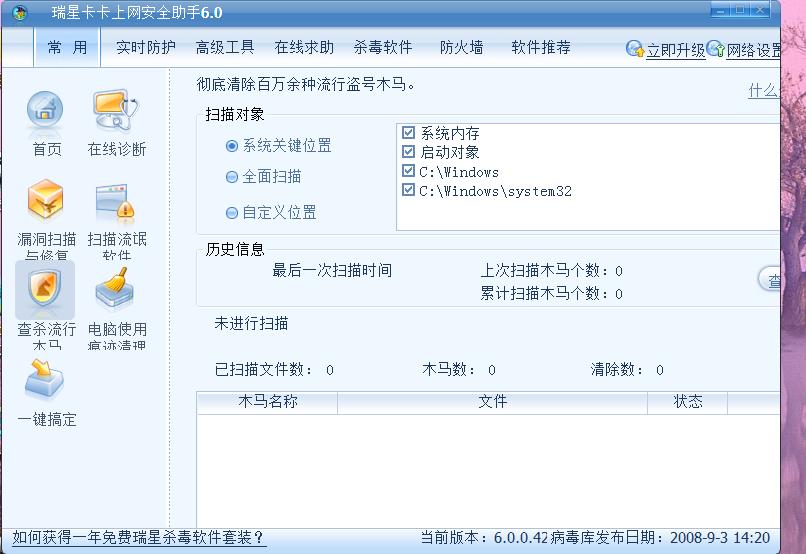 :kaka7: 关键的问题是,找不到查杀的按纽。找不到按纽就没有办法查杀和清楚垃圾。