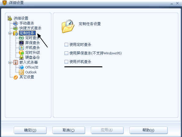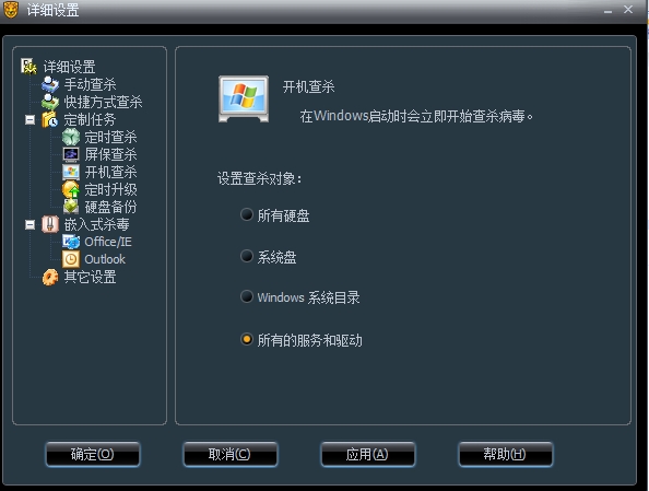 防火墙——设置——详细设置——定制任务中去掉开机查杀
