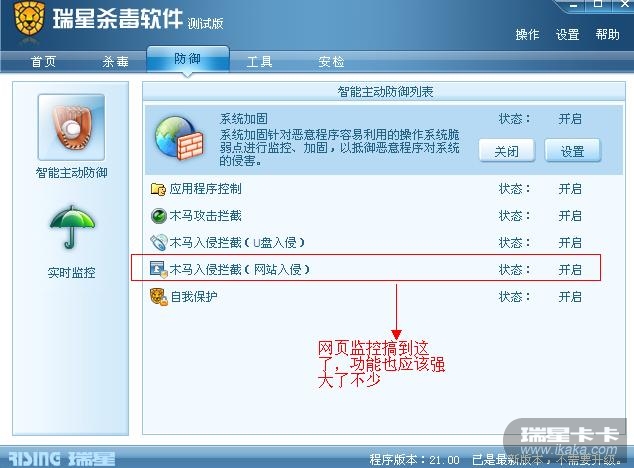 第三个:网页监控经09的加强,已经纳为主动防御一起了