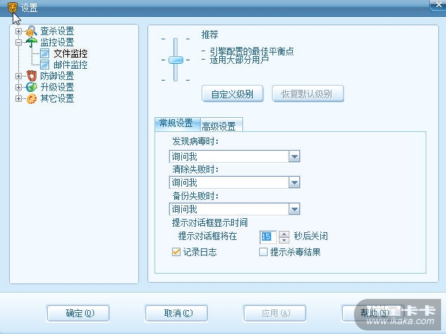 文件监控的提示时间和主动防御的提示时间是不一样的,期待以后的版本能设置吧