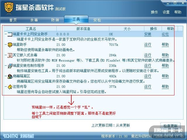 瑞星2009测试版问题反馈
