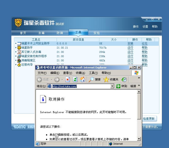 发现在点击瑞星卡卡上网安全助手 的安装按钮后,