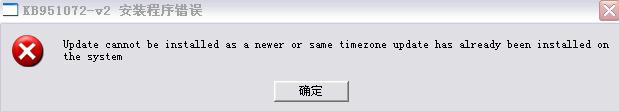 我尝试手动安装卡卡下载的更新程序WindowsXP-KB951072-v2-x86-CHS.exe 结果如下:
