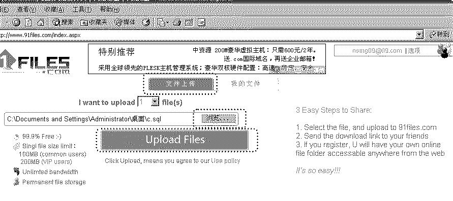 步骤3:切换到“文件上传”的TAB页面,点击【浏览】按钮选择预上传的文件,选择好后点击 Upload Files 上传文件