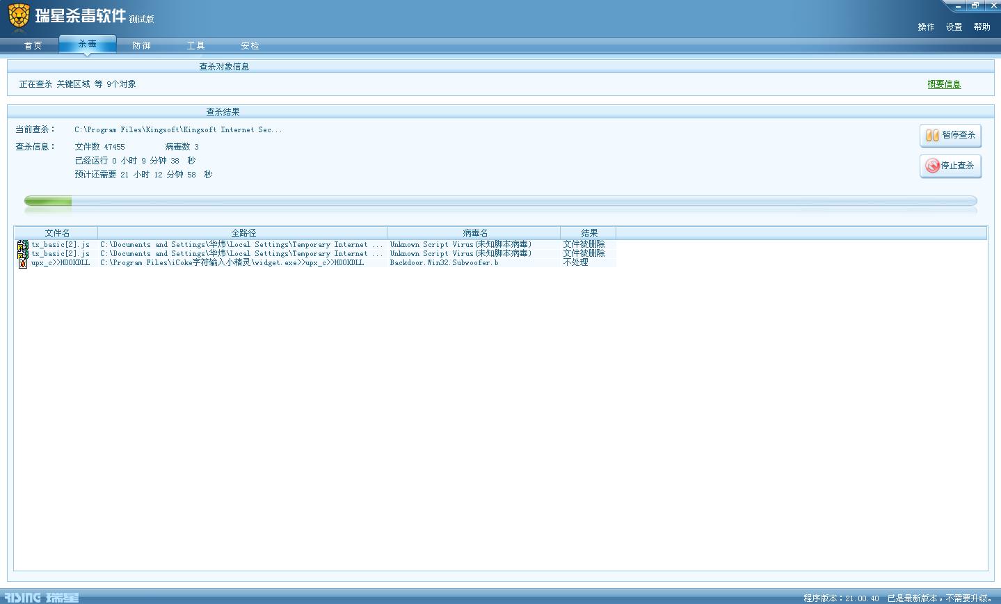 瑞星软件版本:21.00.40