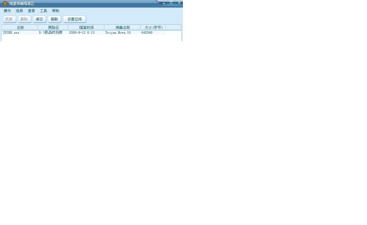 为了查询火车的到发时间,我下了一个极品时刻表,在08版杀毒软件下就没问题,不知怎么到了09版就开始杀它。我不得不反复从隔离区中释放。系统是XP SP3,瑞星版本号:21.00.40