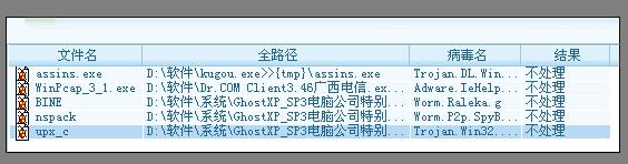 附上误杀的软件有:彩影arp防火墙,酷狗,还有我的系统9.2 ISO文件,和我校园网登录的客户端DR.COM。