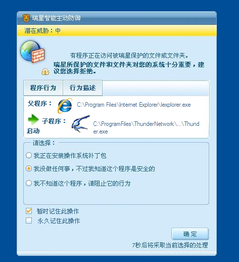 还有个疑问,为什么主动防御提示迅雷这个常用软件?提示也算了,为什么是中的潜在威胁呢?迅雷的威胁很高吗?工程师讲解一下。
