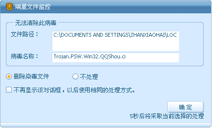 病毒不能被清除,就会删除,我用x防御软件,就是已经删除了,当然不能在删除了。