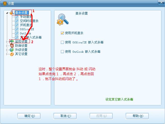 问题现象:在设置界面,当点击另外一个标签时,整个设置界面有很大的闪动或抖动。(如图)