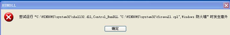 到了控制面板后,选打开防火墙设置,但打不开,显示,什么什么出了意外.(我截图来了)