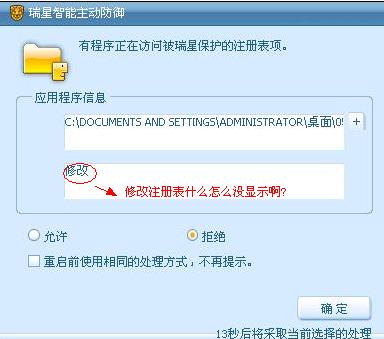 接下来根本不知道病毒修改了注册表什么,因为瑞星没显示,是不是BUG?