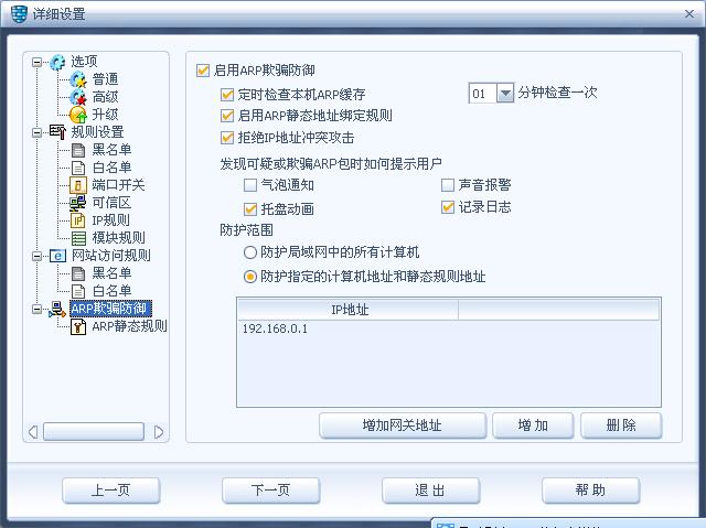 弹出这个对话框证明已经防住了,可以在防火墙详细设置里把ARP防御欺骗 的气泡通知,声音报警,托盘提示取消即可