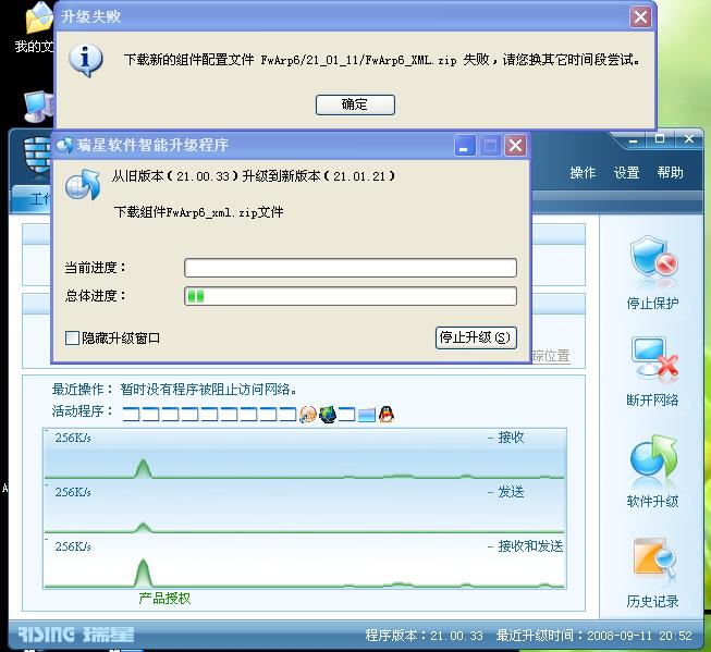 杀毒软件升级失败的提示是什么,最好提供屏幕截图。