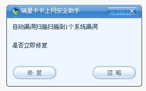 升级到卡卡6之后,每打开一次电脑卡卡都会提示“自动扫描扫描到1个系统漏洞”,我每次都是点“修复”,但好象也没看到卡卡如何修复,反正就是下次再开机子就又出现这个提示,烦死了。难道这个卡卡只会烦人而不会帮人解决问题,还是它本身的错误判断?总这是给它烦透了,请官方解释一下