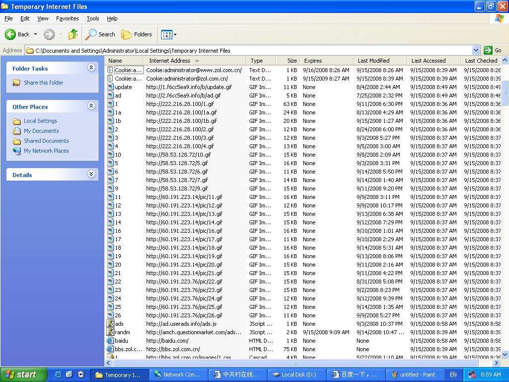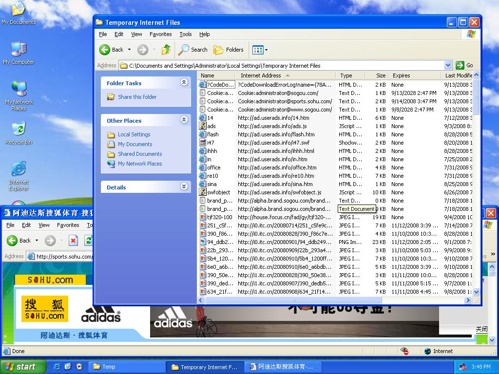 Temporary Internet Files文件夹里。看下就知道。我根本没进过那些。我进的是sohu体育。