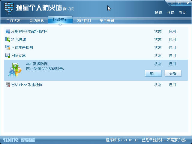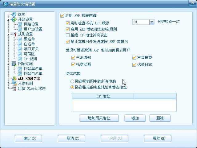 启用与禁用,ARP防御设置界面 都一致,我想禁用后,那边设置选项至少也要灰色吧,或者全不选。