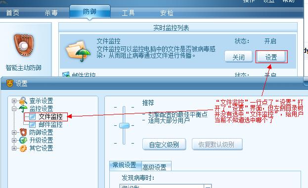 出现问题前的操作步骤:点击“防御”标签,然后点“设置”