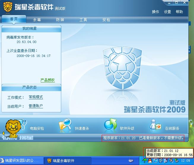 首页 » 企业产品讨论区 » 瑞星2009公测 » 瑞星2009测试版问题反馈 » 瑞星杀毒软件2009公测 » 杀毒软件主界面上显示的版本号和右下角鼠标提示版本号不符