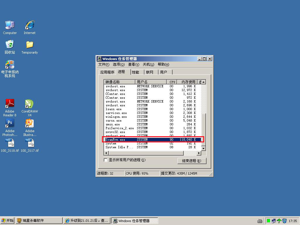 出现问题前的操作步骤:升级到该版本后,查杀病毒时,CPU和内存占用过高,计算机在此时反应特别慢。