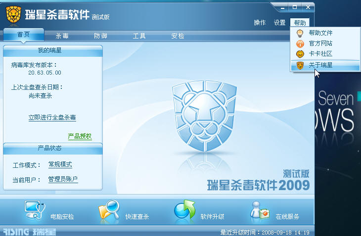 也可以将下图的 “关于瑞星”  改为“版本信息”
