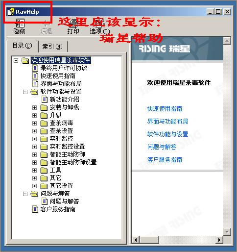 标题为E文,按照以往瑞星的惯例应该显示为汉字!
