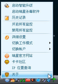 一个是用右键 右下角图标打开,另个是通过 帮助--瑞星关于打开。