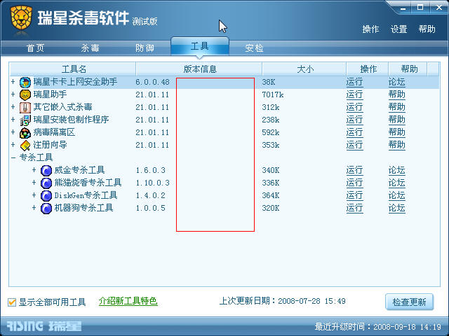 检查更新,下载了几个病毒的专杀, 专杀工具项发现可展开,可展开后,只是出现一个名称。。不知有什么用途。