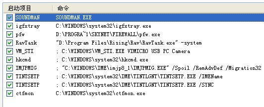 看了看,没什么多余的,绝大多数都是输入法,还有个防火墙,还有瑞星,不用禁用这些的,留着也不怎么影响。