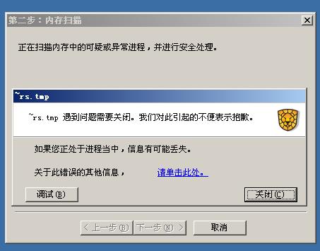 紧急!木马群专杀修复工具运行中出现"~rs.tmp遇到问题需要关闭"无法运行!