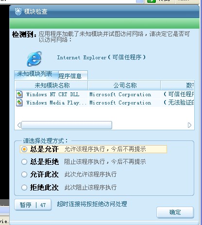问题现象:在开启模块检查功能的状态下,看迅雷在线电影时,弹出连网提示,按确定之后,仍多次弹出,后来就出致命错误了。
