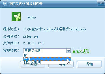 三个选项可以改为: 禁止、允许、询问 。 右边的自定义规则保持不变。