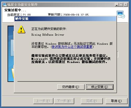 瑞星2009除了以上未通过验证的徽标外,安装正常:default6: