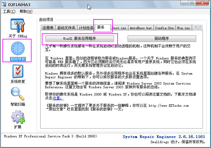 还有哦,高手,我在启动SRENG时候,System Repair Engineer总提示我下面的函数内容与预期值不符,他们可能被一些恶意的软件所修改: