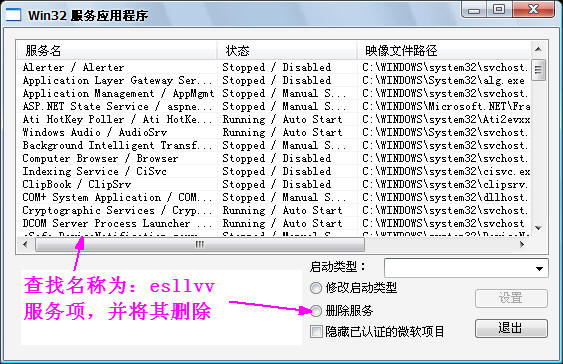 启动项目 -- 服务 -- Win32服务应用程序之如下项删除: