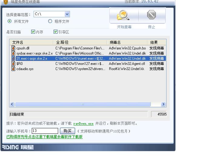 把在线杀毒提示的这些个文件都贴上来,让版主上报瑞星。