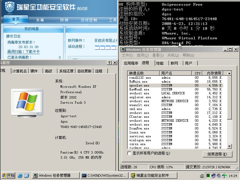 瑞星走过了这么多年了,但是自从2006版开始的资源占用问题一直没有得到改善,这么多年了。江民改善了资源占用了,金山的2008的内存占用也降低到了很低程度了,卡巴的cpu和内存资源占用问题也在2009版有了巨大的改变。诺顿的也是一个版本一个版本的在减少资源占用。只有我们国内的杀毒软件行业老大,任然以资源占用老大的地位雄踞第一。这么多年了,瑞星居然无法改善资源占用,是在很让人很失望。不知道瑞星是不是觉得国内用户的计算机比国外的好,资源占用一提再提。