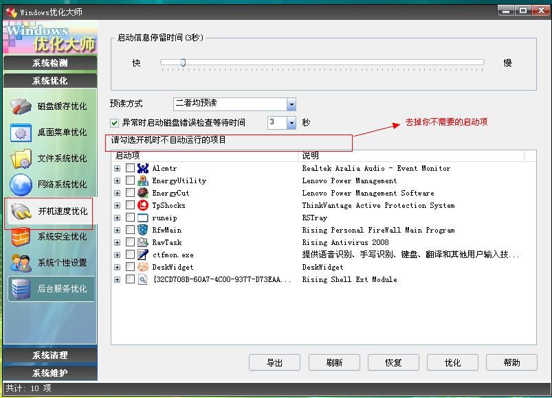 开机速度与桌面那种图标无关,与配置和启动项有关