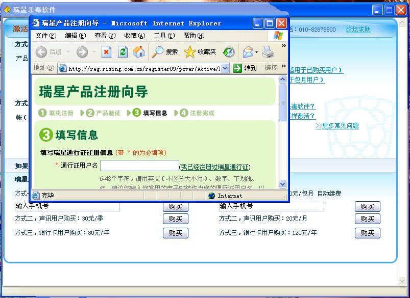 问题现象:(1)瑞星老是自动跳出用户注册窗口,影响用户使用电脑和用户心情: