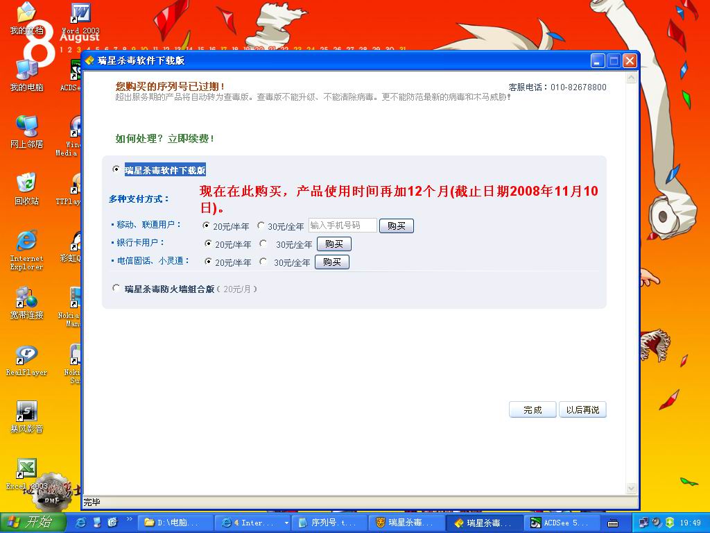 瑞星杀毒软件下载版 怎么输入了几次序列号之后就再也不能输入了
