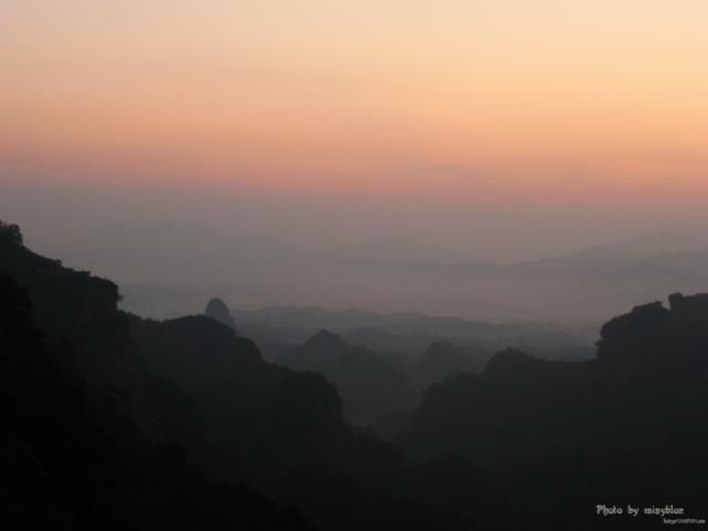 本来我都调好闹钟3点起来上山的,他们两个四点起来上山的,我也原以为身心疲惫加肌肉酸痛的安分地休息一下继续明天的旅程。由于床褥跟被和冷气的问题,睡得不怎么舒服的我隐隐约约听到外面的喧闹声,然后再用了半秒钟想象了一下山上此时热闹的情景,觉得这是一个好难得的机会,于是我跳起来收拾东西义无反顾地准备上丹霞山了,两个同学对我的决定感到不解,但是我想了一下,毕竟本来这次丹霞山之旅本来是一个人的旅程,所以我一个人上山似乎也不觉得害怕。