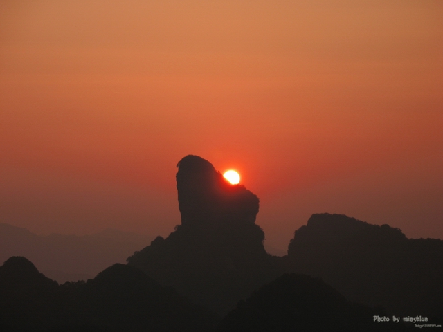 经过一个寂寞难熬的漫漫长夜,我终于迎来黎明!此时,有人欢呼起来,该上山的人陆陆续续地上山,该起来的陆陆续续收拾东西,观日亭霎时间人山人海,我要不知道那些人从什么地方什么时候涌出来的。好在我早早将我的三脚架展开占了一个相当有利的位置,虽然后面好多人对我立了个三脚架感到不满,我此时不会理会后面的人怎么说我,毕竟这是我一晚留守观日亭所战的位置,虽然好多人都不断靠近我的三脚架,但是稍明事理的人都没有妨碍到我,但是后来有一个女人,从人群中挤出来跑到我相机面前,她当时口口声声答应我以及我身边的几个人不会妨碍到我们的,但是后来事实证明,真个女人不是一般的恶劣,脸皮不是一般的厚,我警告过她多次,众人也抱怨过她几次,但是她后来变本加厉地打算叫朋友过来,本来我们已经勉为其难地给她一个立足空间。但是这种素质低下的人,做的事往往是让人感到愤怒,社会因为有这样的人才会变得冷漠,变得落后!姑且不谈那个恶劣的女人,言归正传,幸好我带了三脚架,众人见到这样漂亮的景色也没法拍下来,大多是模糊不清。我后面人见到我拍了这张相,