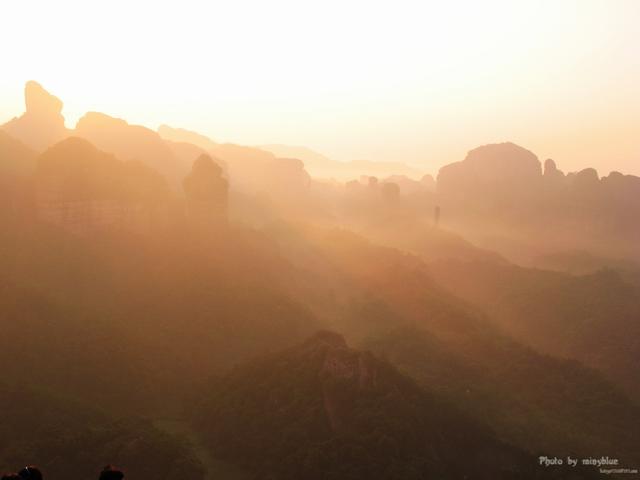 经过一晚折磨的我,看着欣赏完日出的人潮慢慢向山下涌的时候,突然觉得异常的饥饿,于是我就找了一个地方随便坐下来啃面包了,虽然面包不怎么好吃,但此时的面包是我唯一的粮食,好在昨晚没用吃太多。我开始以为这样会遭遇到别人用奇怪的目光打量,但是当我环顾了一下身边的情况之后,发现原来好多人跟我做着同样的事情。有的给我的感觉就像,一家大小在这丹霞山清晨的阳光享受着野餐的乐趣,尽管啃着几个同样不怎么好吃的包子。啃完包子之后发现原来还有好多人在等待下山,丹霞80度的铁索尽管是白天,但是依然充满危险的,一不小心可能是一群人滚下山……下山途中发觉自己原来是这么累这么困的,不过完满执行了原来睇日出的计划,虽然只有一个人睇,也不枉此次韶关之旅。睇日出可算是我这次韶关之旅只有意义,最有感触的部分!下山途中居然看到这样的景致