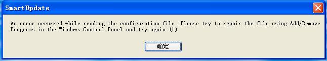An error occureed while reading the configuration file. Please try to repair the file using Add/Remove Programs in the Windows Control Panel and try again.(1)