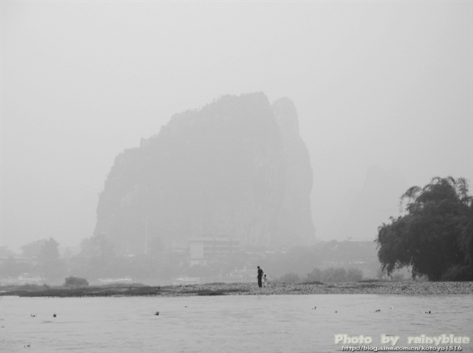 这张相是摄于桂林的,泛舟游漓江的时候,好偶然遇到的这样一个镜头。后期将相片处理成黑白模式,可以让读者免去一些不必要的干扰可以专心聚焦相片的细节,通过背景的大山父子的对比显得这对父子的渺小,人与自然对比之后也有着相同的渺小感和无力感。尽管我们在大自然面前是如此的渺小,但是父亲依然用他渺小而又伟大的身躯带着我们不断向前走,为我们遮风挡雨,无怨无悔。无论你现在身在何处,从事何种职业,伟大与否,请不要忘记你的父亲也曾经是这样牵着你的手为你遮风挡雨。