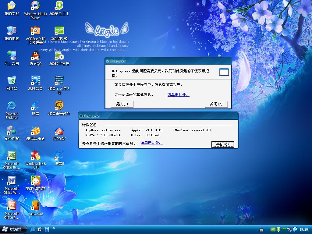 新装的番茄SP3用360打了16个补丁,重启后瑞星不能正常启动.如上图.